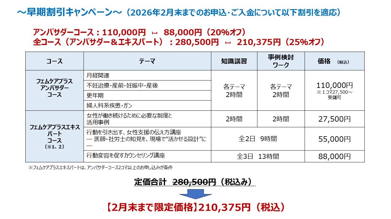 ・女性の健康課題とキャリアの関係を体系的に理解し、職場での基礎的な関わり方を身につけたい方